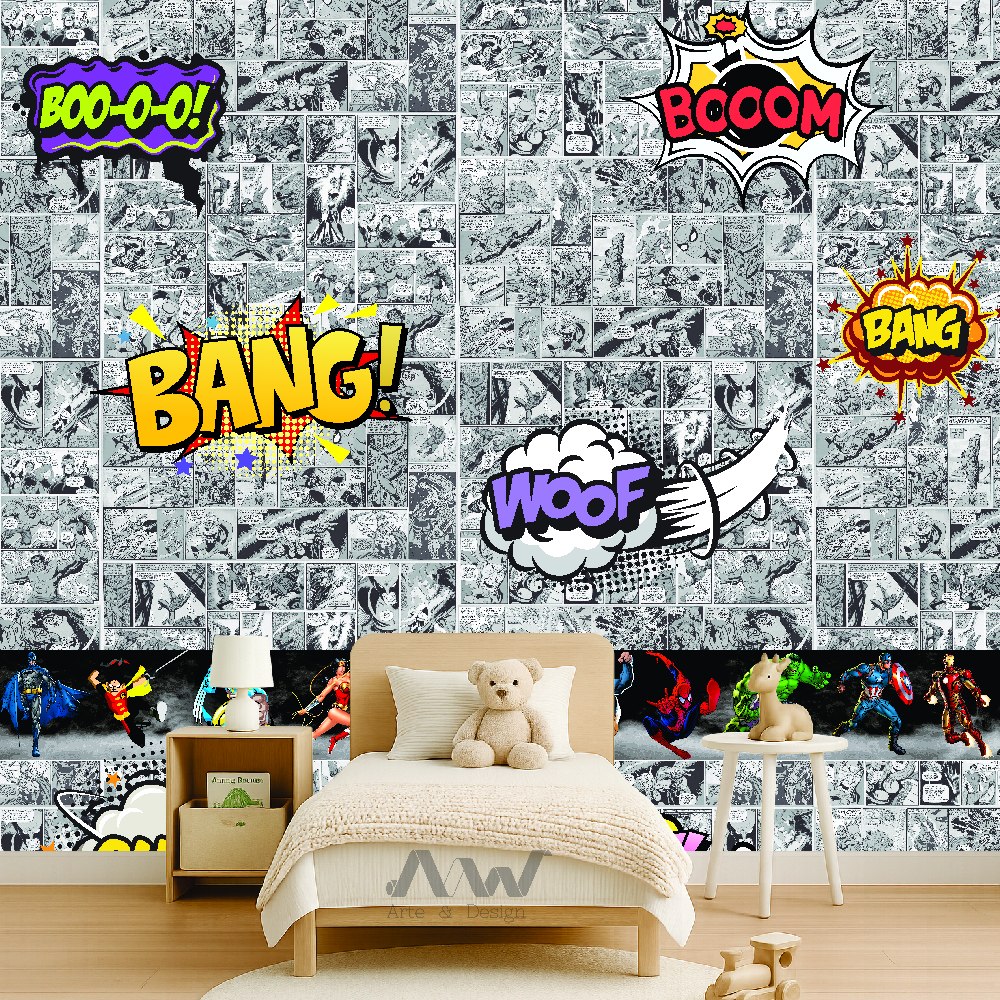 Papel de Parede Adesivo - História em quadrinhos Preto e Branco