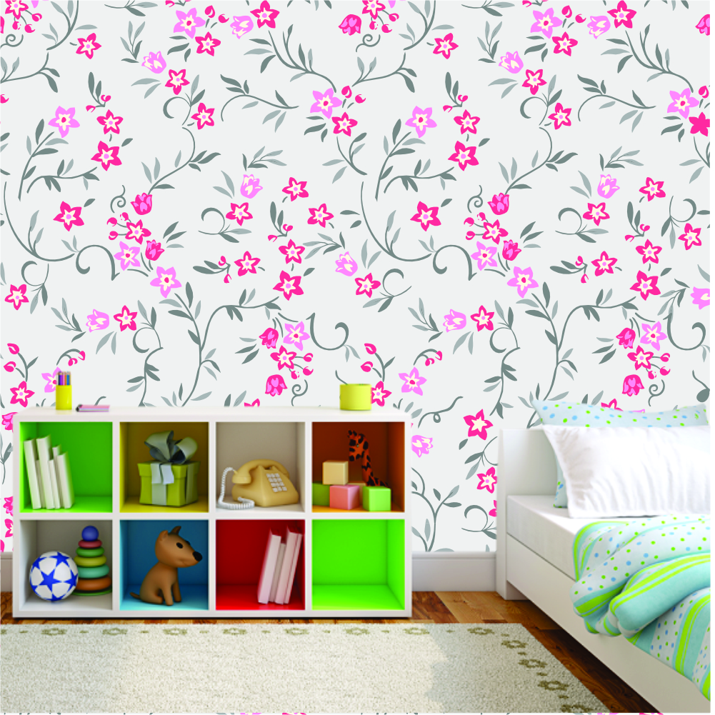 Papel de Parede Adesivo - Ramo de Flores Cor de Rosa com Fundo Cinza
