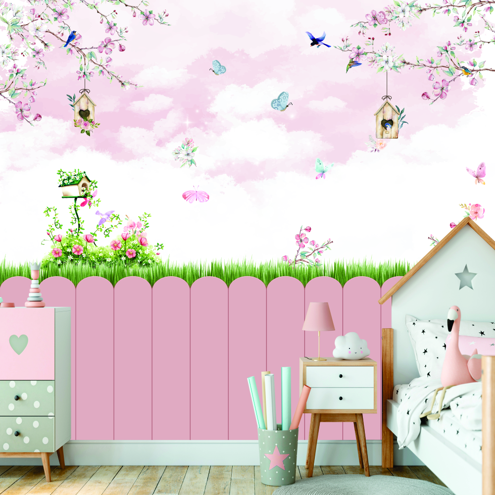 Papel de parede Adesivo - Jardim Encantando com cercado rosa